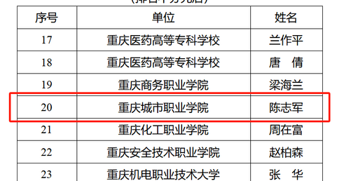 学校副校长陈志军入选重庆市首批职业教育中青年领军人才培养对象