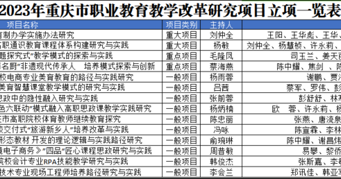 喜报|砥志研思 行而不辍——木瓜视频 教师2023年重庆市职业教育教学改革研究项目立项数再创新高