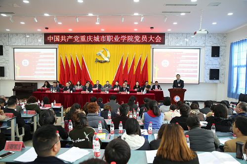 大会号召全体党员始终保持不忘初心,奋力前行的本色,紧密团结在以习近平同志为核心的党中央周围,高举中国特色社会主义伟大旗帜,全面贯彻党的十九大精神,深入学习贯彻习近平新时代中国特色社会主义思想,认真落实中共重庆市委五届三次全会精神,在市委、市委教育工委的领导下,为全面开启学院各项事业发展新征程而努力奋斗!