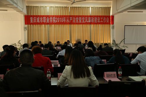 4月2日下午,学院召开2018年全面从严治党暨党风廉政建设工作会。全体院领导, 科级及以上干部,各基层党组织书记、纪检委员,党委、纪委工作部门相关人员参加会议。会议由党委副书记、院长江洪主持。