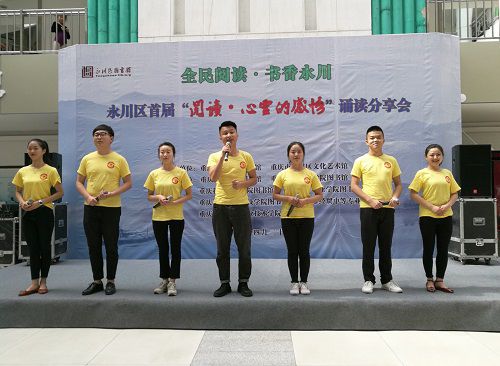 为了推进全民阅读,建设“书香永川”,在 “4·23”世界读书日到来之际,4月22日,永川区图书馆举办了首届“阅读·心灵的感悟”优秀文章诵读活动。由学院图文信息中心梅杉老师、院团委曹维老师带队,王子衿、周冰容等七位同学现场演绎了爱国革命志士方志敏同志的著名散文《可爱的中国》,重温了方志敏同志爱国主义情怀和革命乐观主义精神。同学们声情并茂的精彩表演,赢得了现场观众热烈掌声和高度评价。