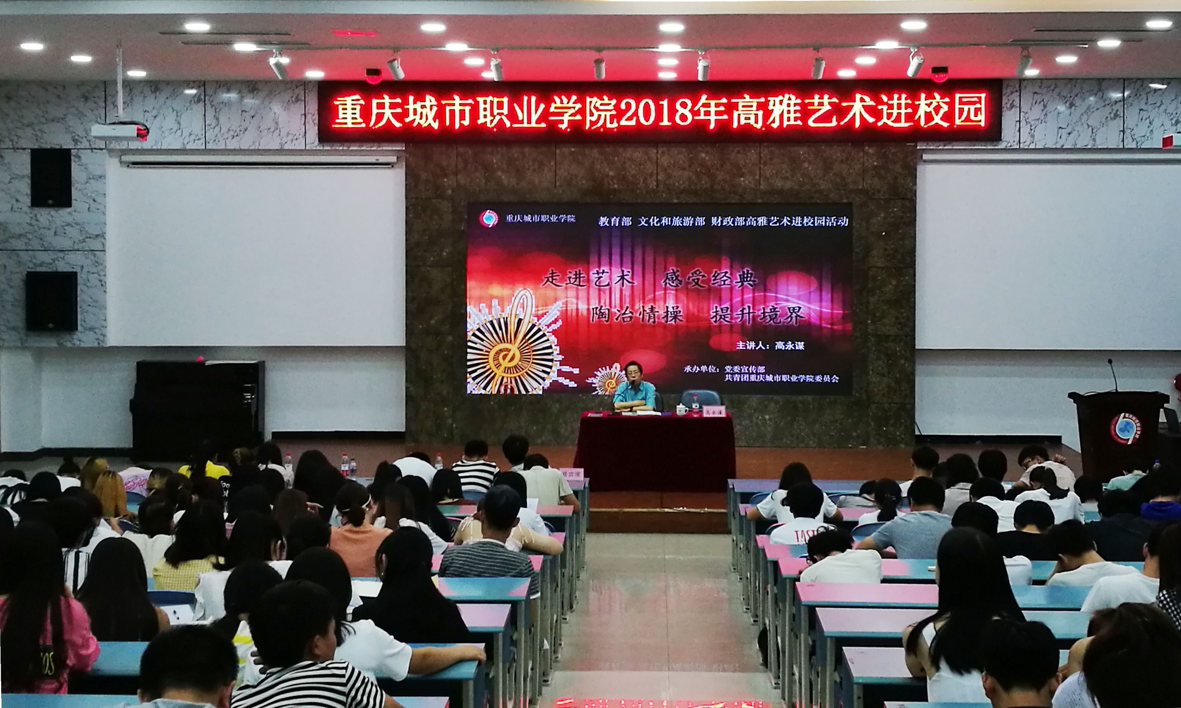 为进一步弘扬高雅艺术,推进艺术教育,提高师生艺术修养,6月6日晚上,“教育部、文化和旅游部、财政部高雅艺术进校园活动”在学院学术报告厅举办,全国高等学校艺术教育专家讲学团成员高永谋教授到校作讲座。本次讲座以“走进艺术,感受经典,陶冶情操,提升境界”为主题,吸引了系部300余名学生参加。
