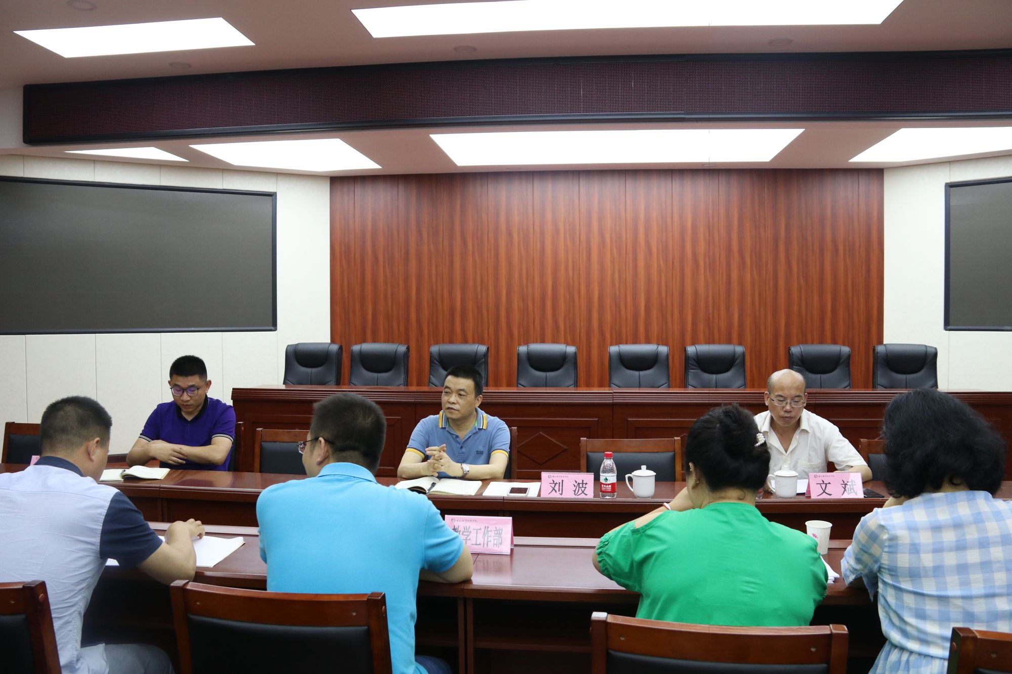 6月4日下午,学院党委书记刘波、副院长文斌到教学工作部开展调研并听取部门工作汇报,与部门全体工作人员座谈交流。