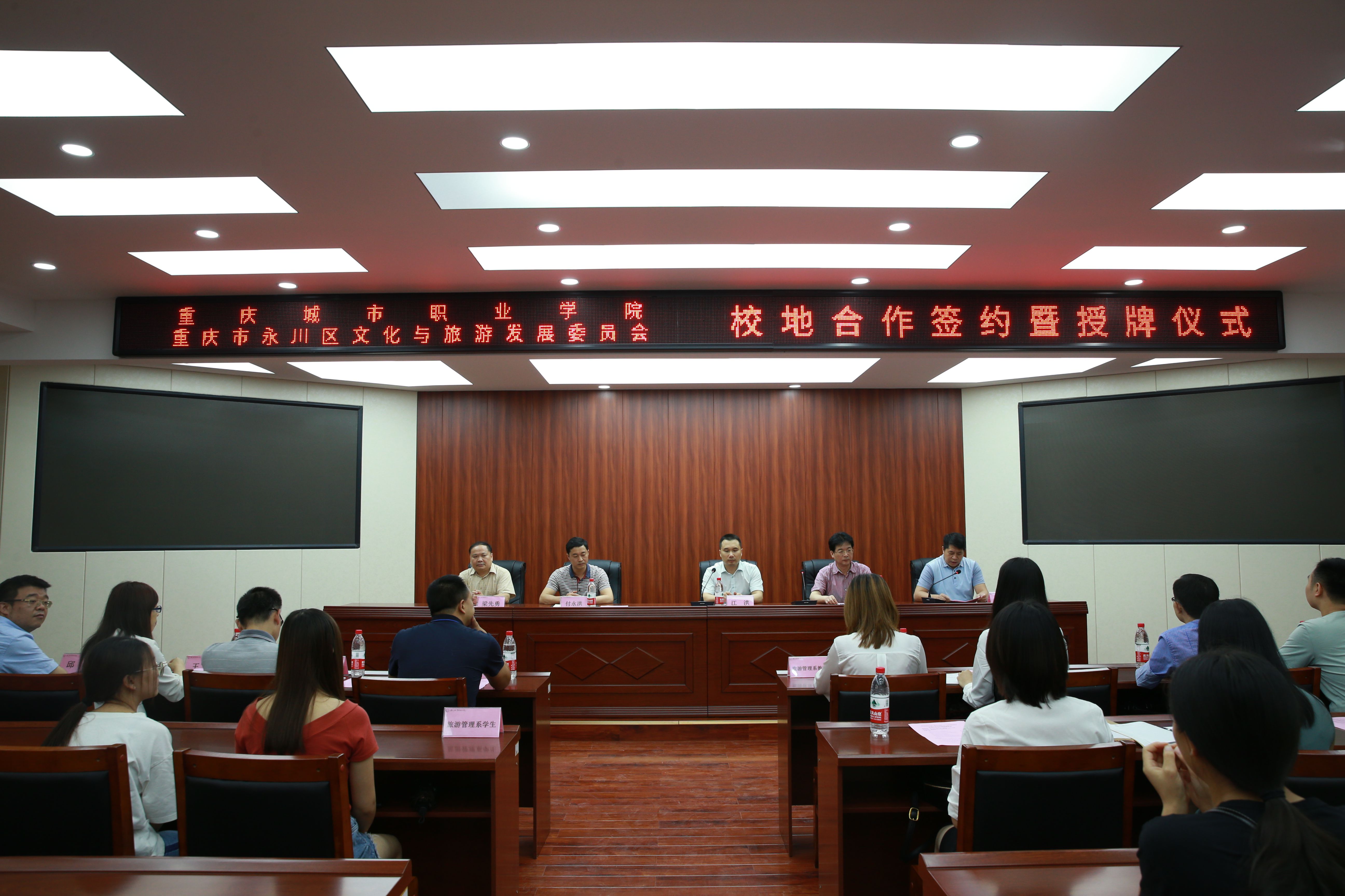 学院副院长梁先勇和区文化旅游委副主任付永红签署了校地合作框架协议;区文化旅游委主任唐士德向学院授牌“重庆市永川区文化旅游人才培养基地”。