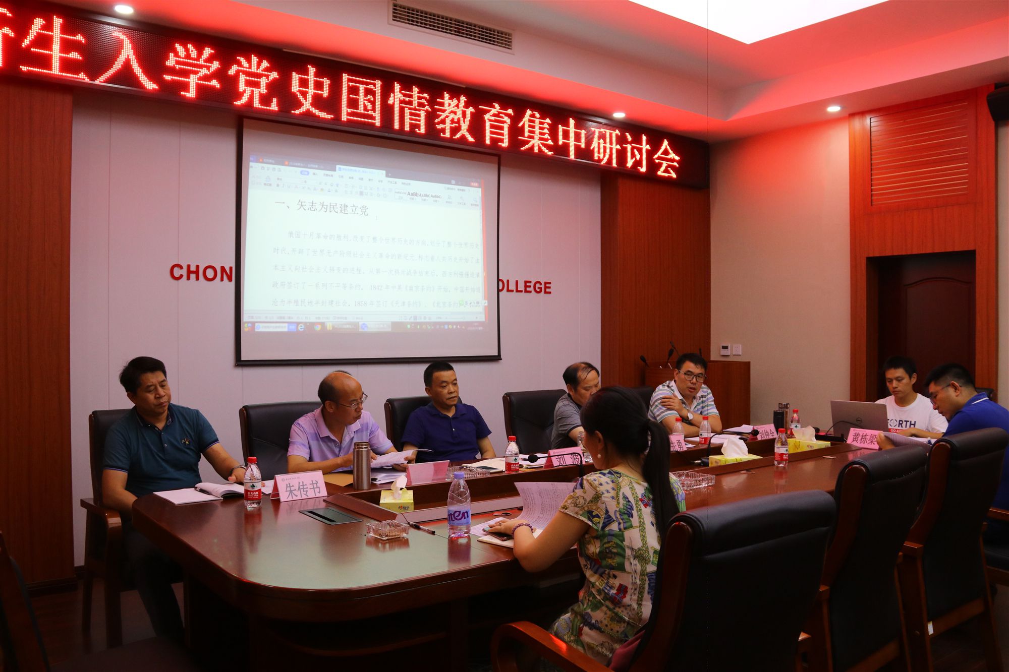 8月26日下午,2019级新生党史国情教育专题研讨会在博学馆607会议室召开,学院党委书记刘波、副院长梁先勇、文斌、刘仲全,纪委书记朱传书出席会议。会议由党委委员、副院长刘仲全主持。