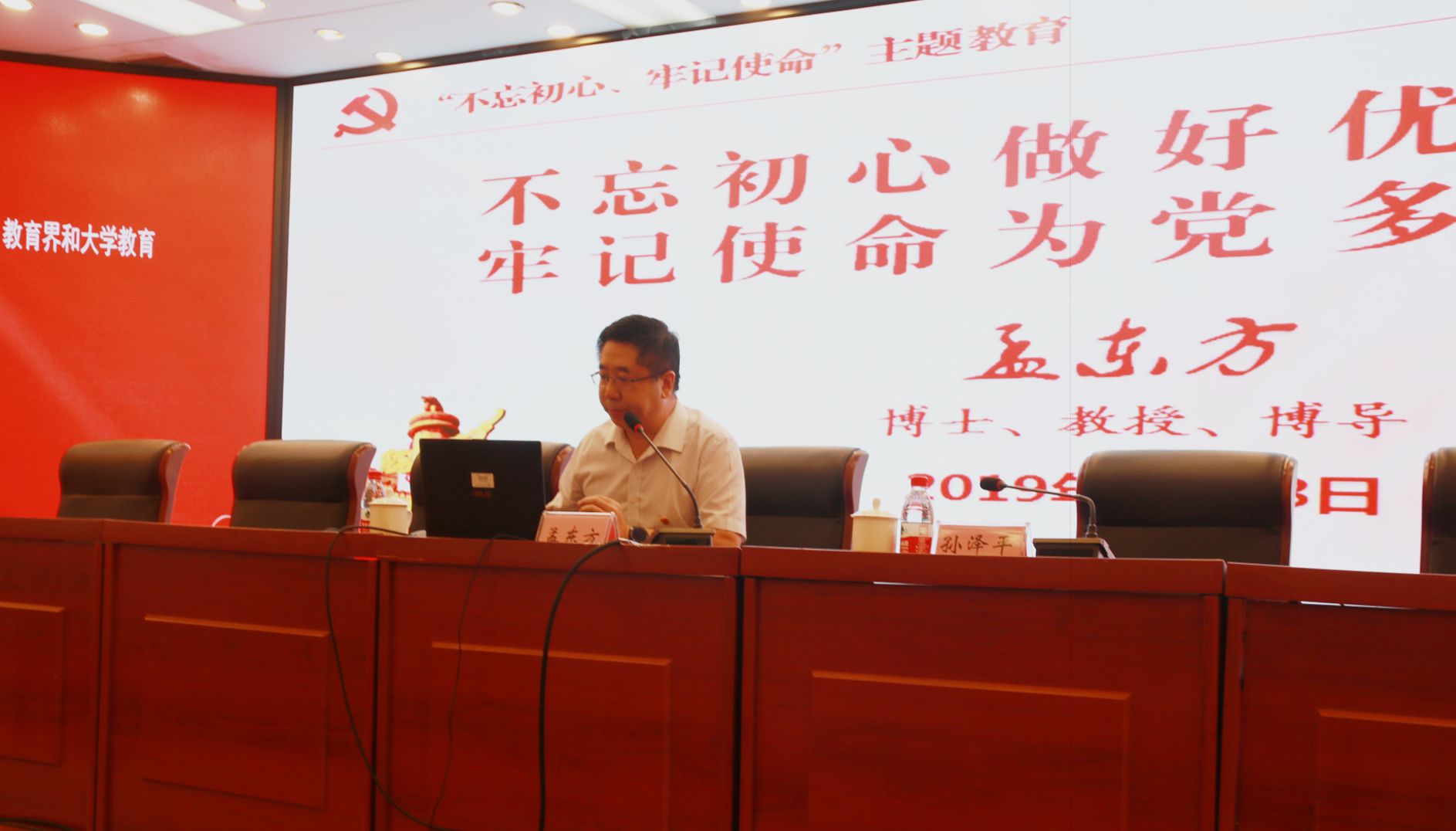 围绕“不忘大学教育初心,牢记为党育才使命”中心,孟东方校长给出了四点解读,分别介绍了初心与使命的内涵;中国共产党人的初心和使命;教育的初心和使命;大学的初心和使命。