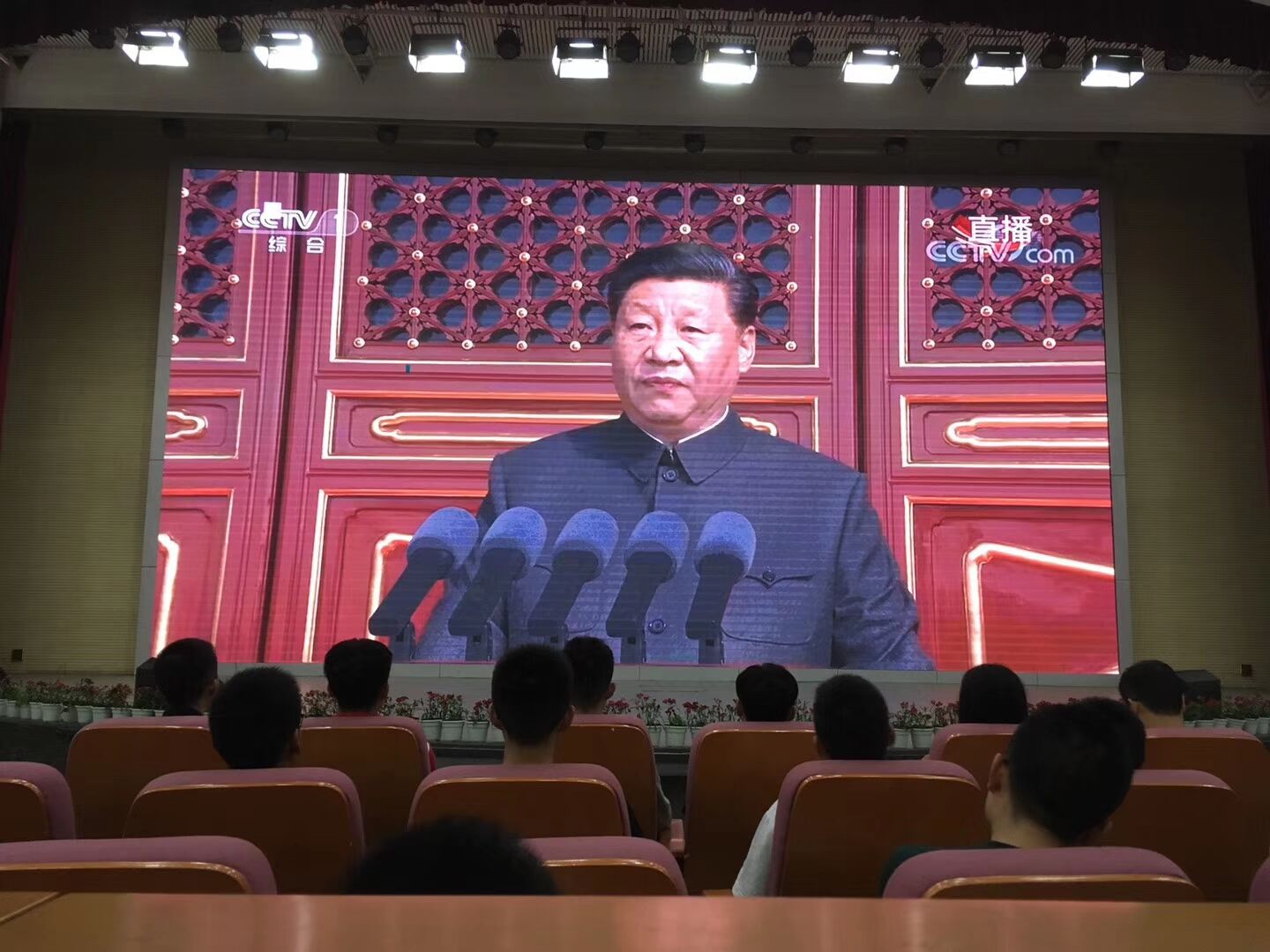 全校师生热切关注庆祝中华人民共和国成立70周年活动。
