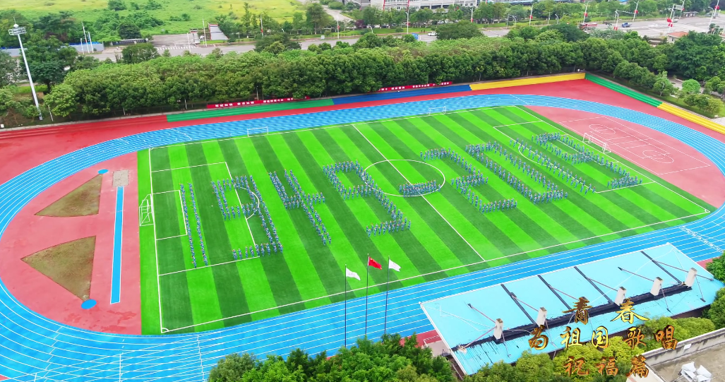 在张燕老师的指挥下,正在军训的2019级新生组成了1949-2019、70等字样,一面长达30米的国旗被同学们高举的双手传递,从700人的头顶拂过。这庄严的时刻,令现场每一个人都感到无比骄傲和自豪,爱国深情溢于言表。