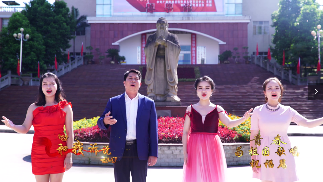 “我和我的祖国,一刻也不能分割……”在曹维、赖静雯、朱传书、曾傲四位老师的深情领唱下,快闪活动拉开序幕。
