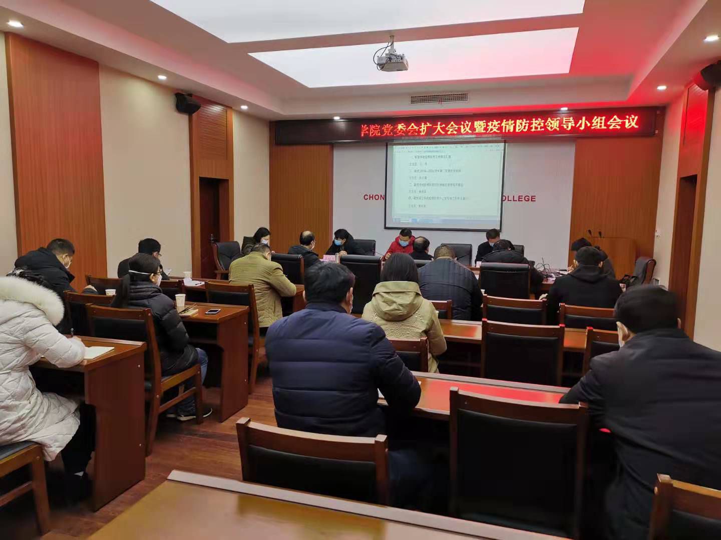 会议集体学习习近平总书记关于新型冠状病毒感染的肺炎疫情防控工作的重要指示批示精神,传达贯彻全市教育系统新型冠状病毒感染的肺炎疫情防控工作视频调度会议精神,听取学校疫情防控办公室关于学校疫情防控工作情况的汇报,研判学校疫情防控形势,研究延迟春季开学、增设学校疫情防控办公室专项工作组、实施疫情防控包片网格化管理等防控工作,对学校疫情防控工作进行再布置再调度。