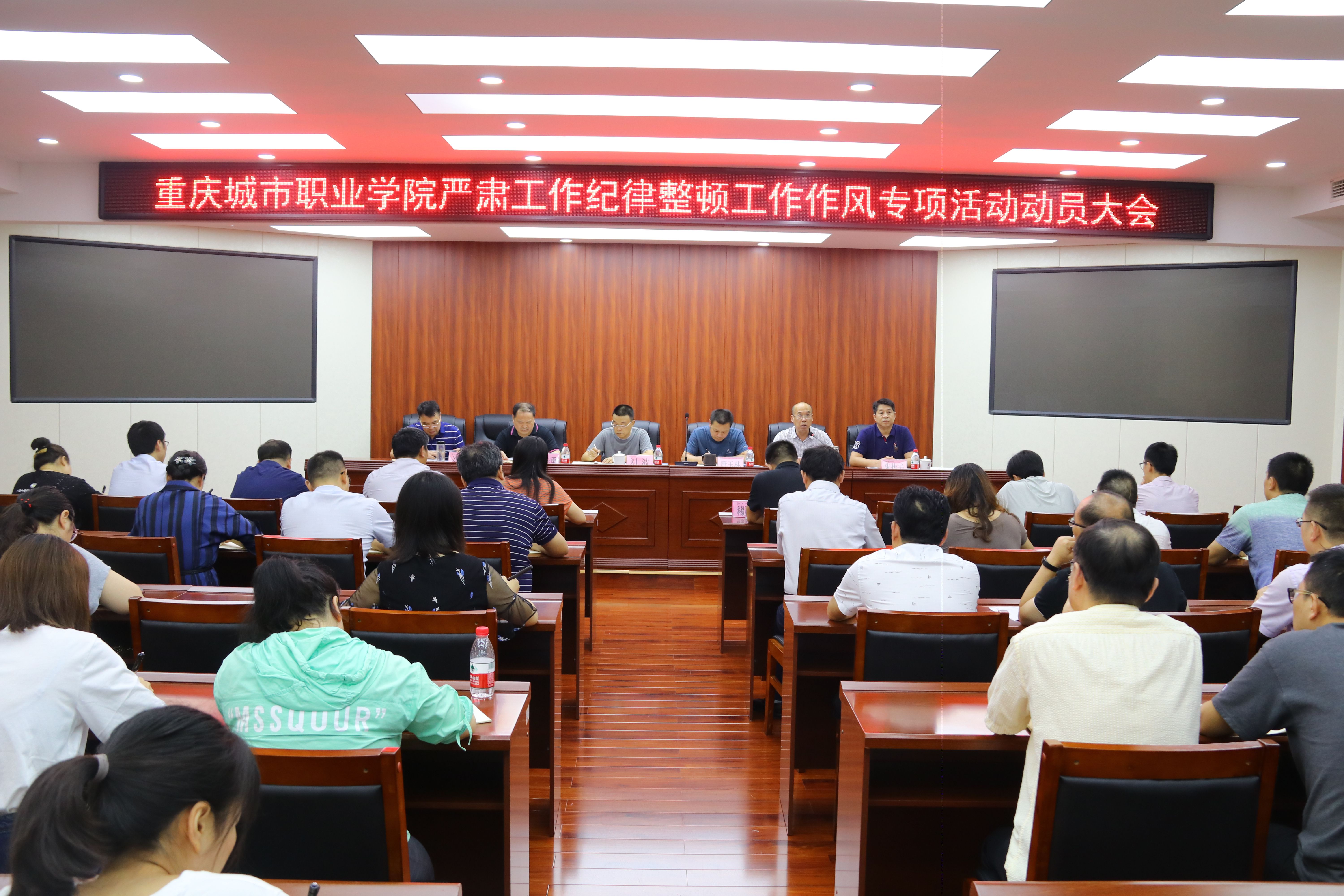 党委副书记、校长唐玉林在讲话中指出,严肃工作纪律整顿工作作风要解决好师德师风与个人修为境界、目标愿景与信心自强、校园风骨与城职精神、岗位状态与作风效能四个方面的问题。