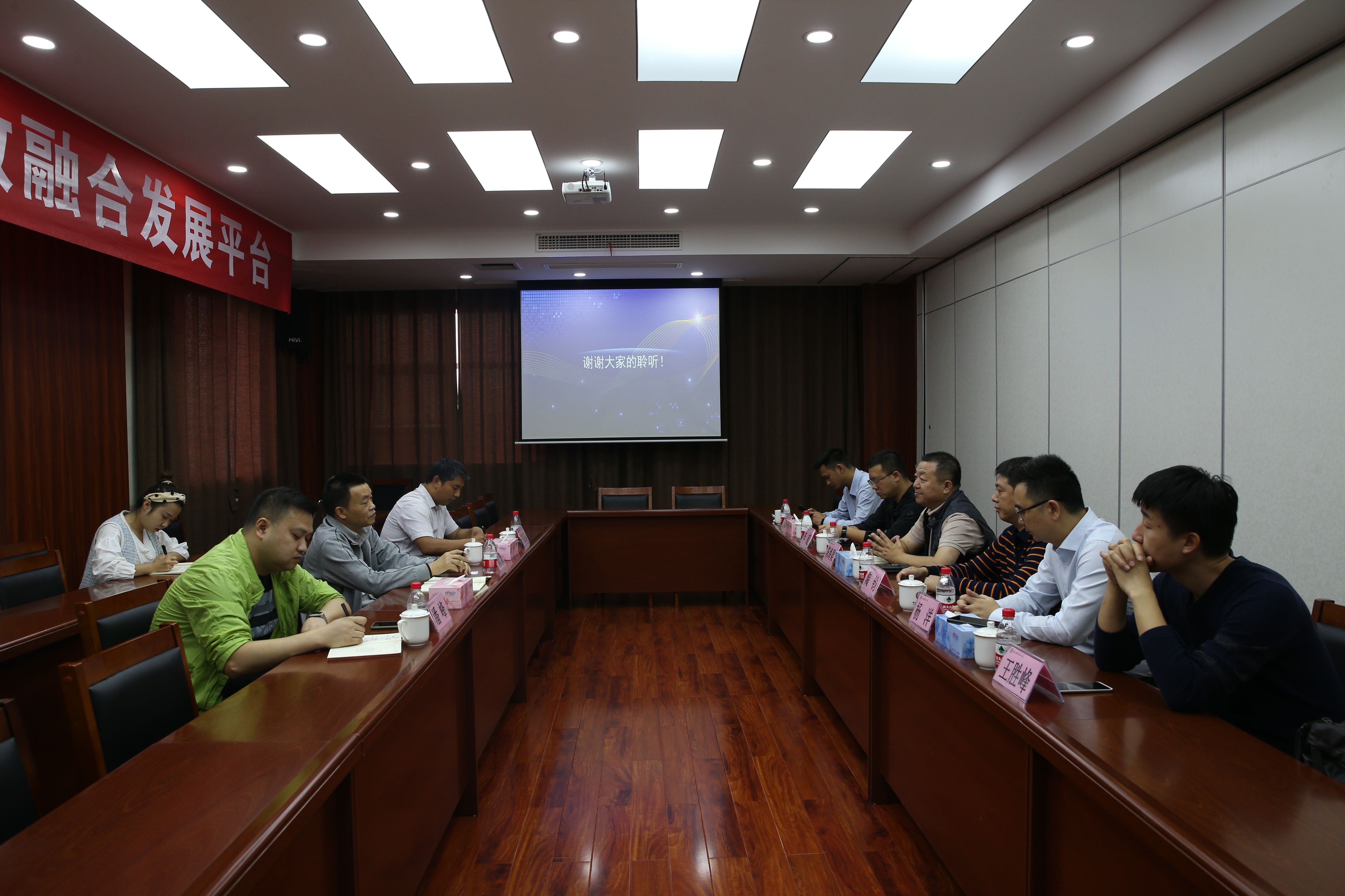 考察交流。党委书记刘波与陈海梁一行就校企合作、大数据相关专业建设和未来发展进行了座谈交流。