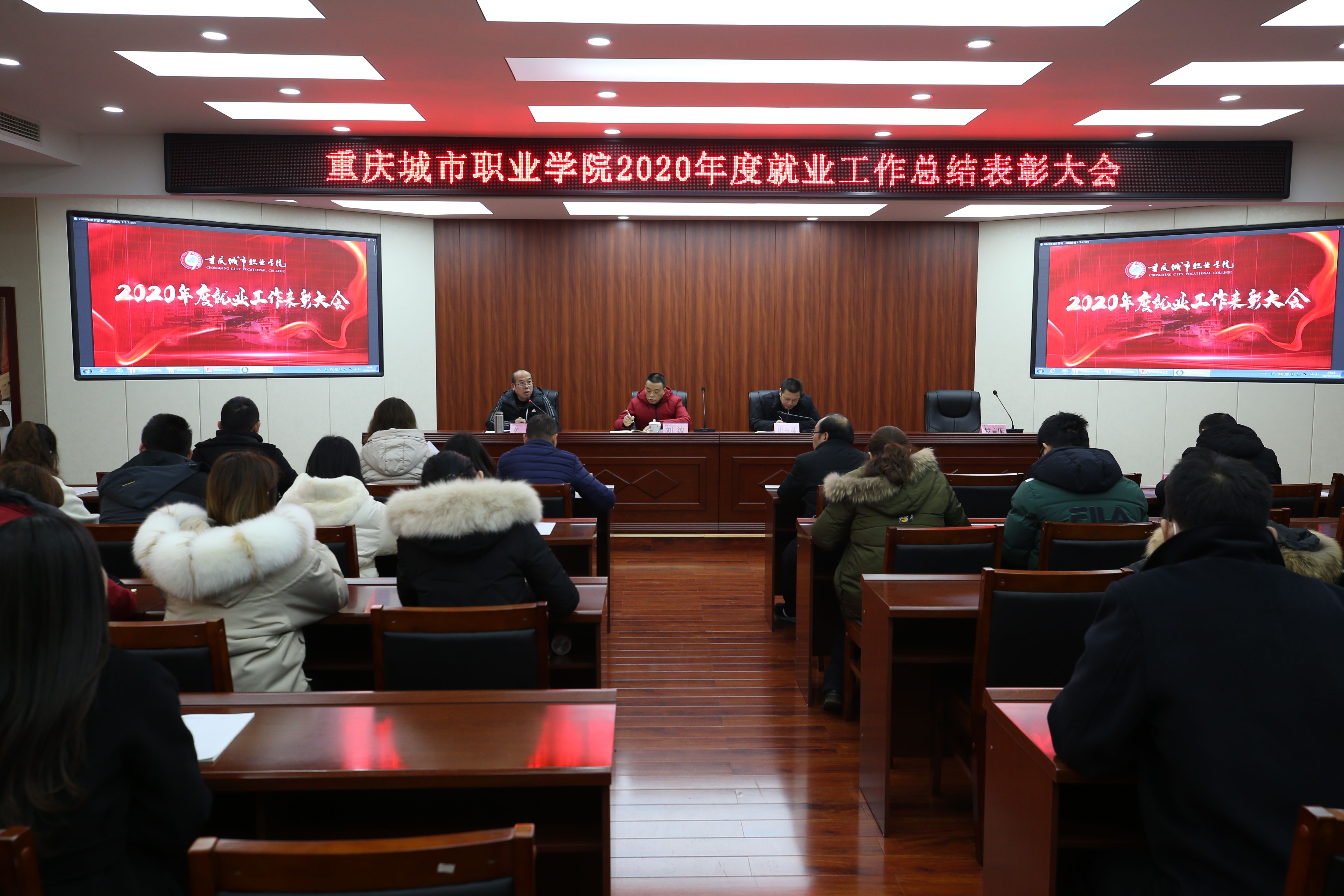 12月24日下午,党委委员、副校长文斌主持召开2020年度就业工作总结暨表彰大会。党委书记刘波,党委副书记、校长唐玉林出席会议并讲话。相关职能部门负责人,二级院系负责人、就业干事、辅导员,就业创业服务科全体人员参加会议。