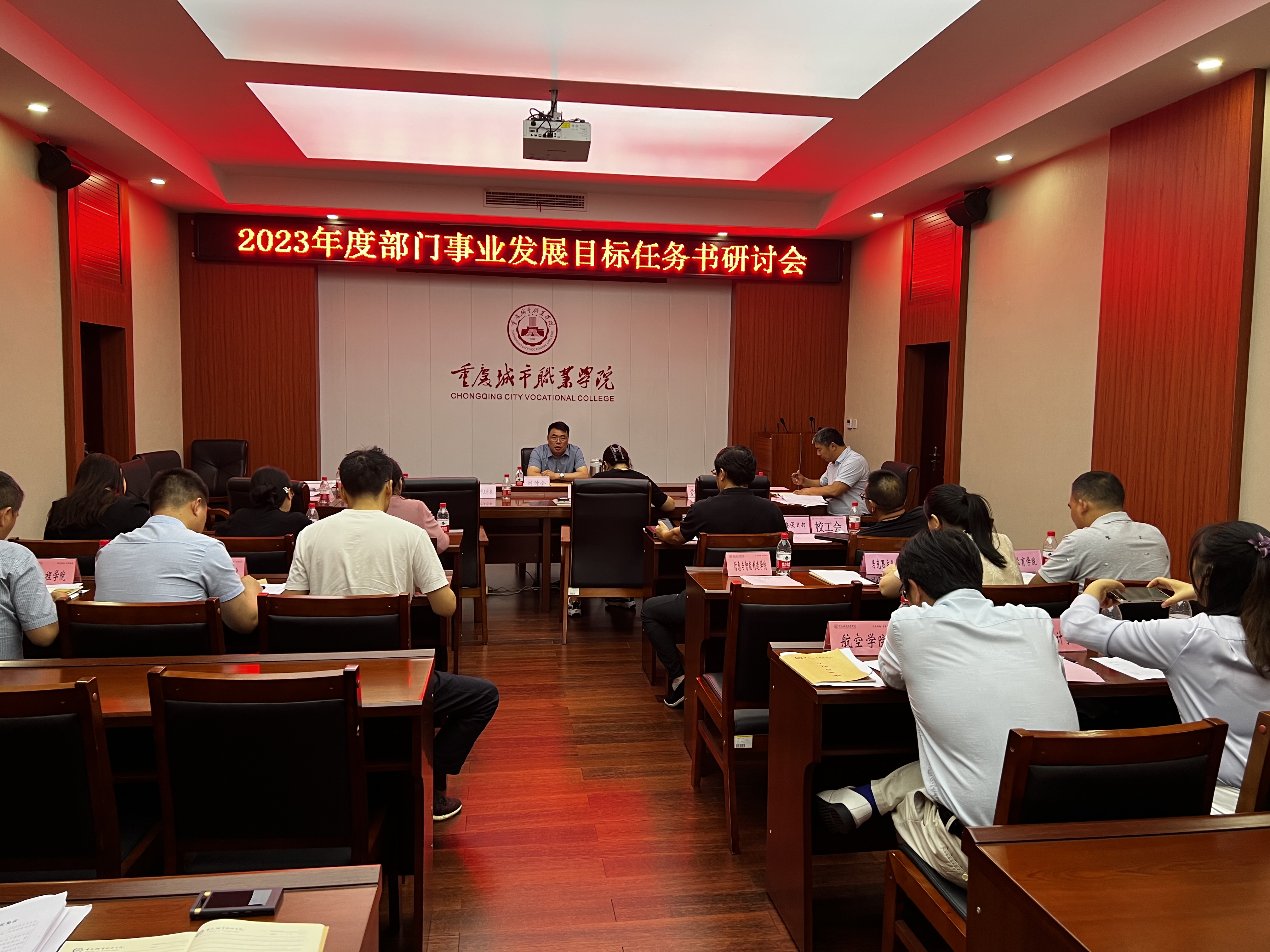 会上,教务处副处长刘振栋对2023年度部门事业发展目标工作任务和目标值制定的依据、任务结构和考核权重及前期征求意见情况作了说明。各职能部门及二级学院负责人就任务指标进行讨论。