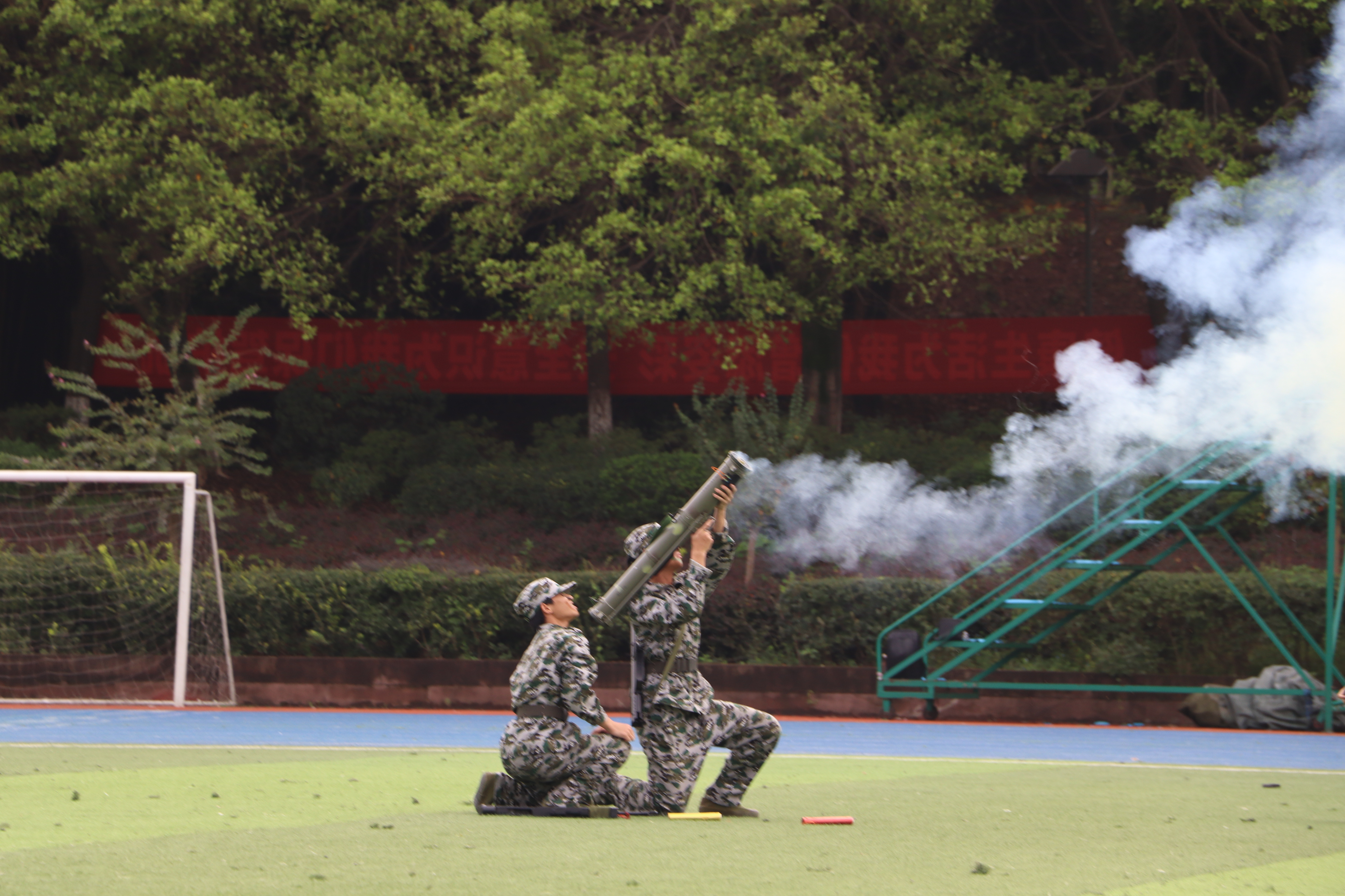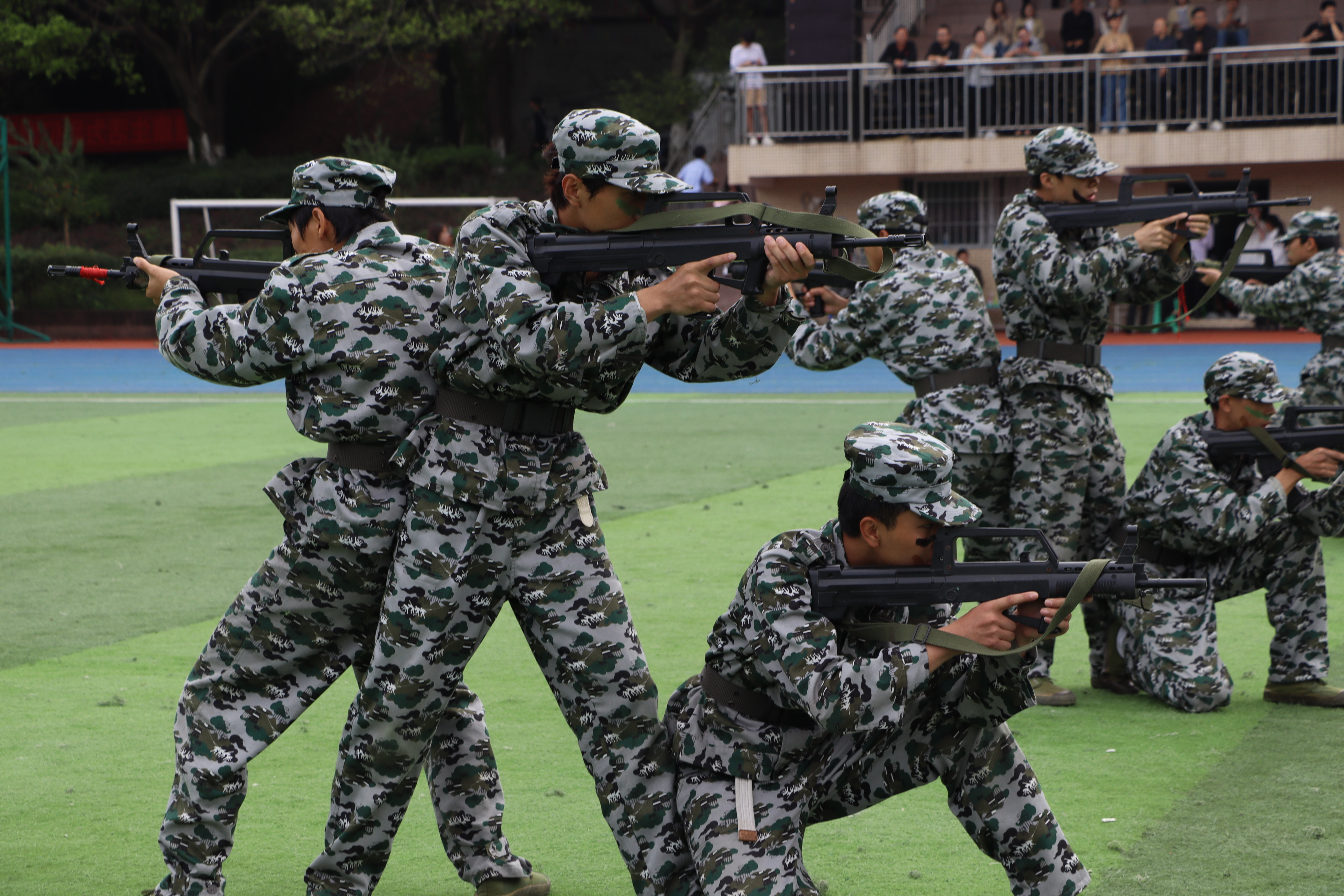 分列式后,参训学生先后进行队列变换、匕首操、军体拳、战术表演等训练汇报演出。