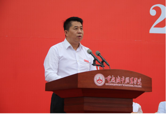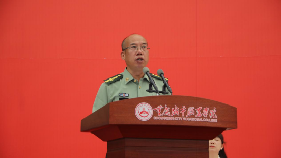 永川区武装部副部长白春燕上校代表永川区人民武装部向承担军训任务的教官表示衷心感谢,向获得表彰的同学、教官、连队表示热烈的祝贺。他指出,经过为期两周的训练,同学们的军事素养、身体素质和精神面貌发生可喜的变化,取得了预期成效。他希望同学们要巩固拓展军训成果,厚植家国情怀,把青春梦与中国梦有机融合,用青春梦共筑中国梦,在实现中国梦中成就青春梦;赓续红色血脉,弘扬党的优良传统和作风,勇担时代重任,奋进新征程,建功新时代;传承红色匠心,锤炼过硬技能本领,立志成为能工巧匠、大国工匠,争当技能成才、技能报国的新时代好青年。