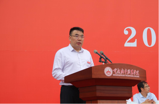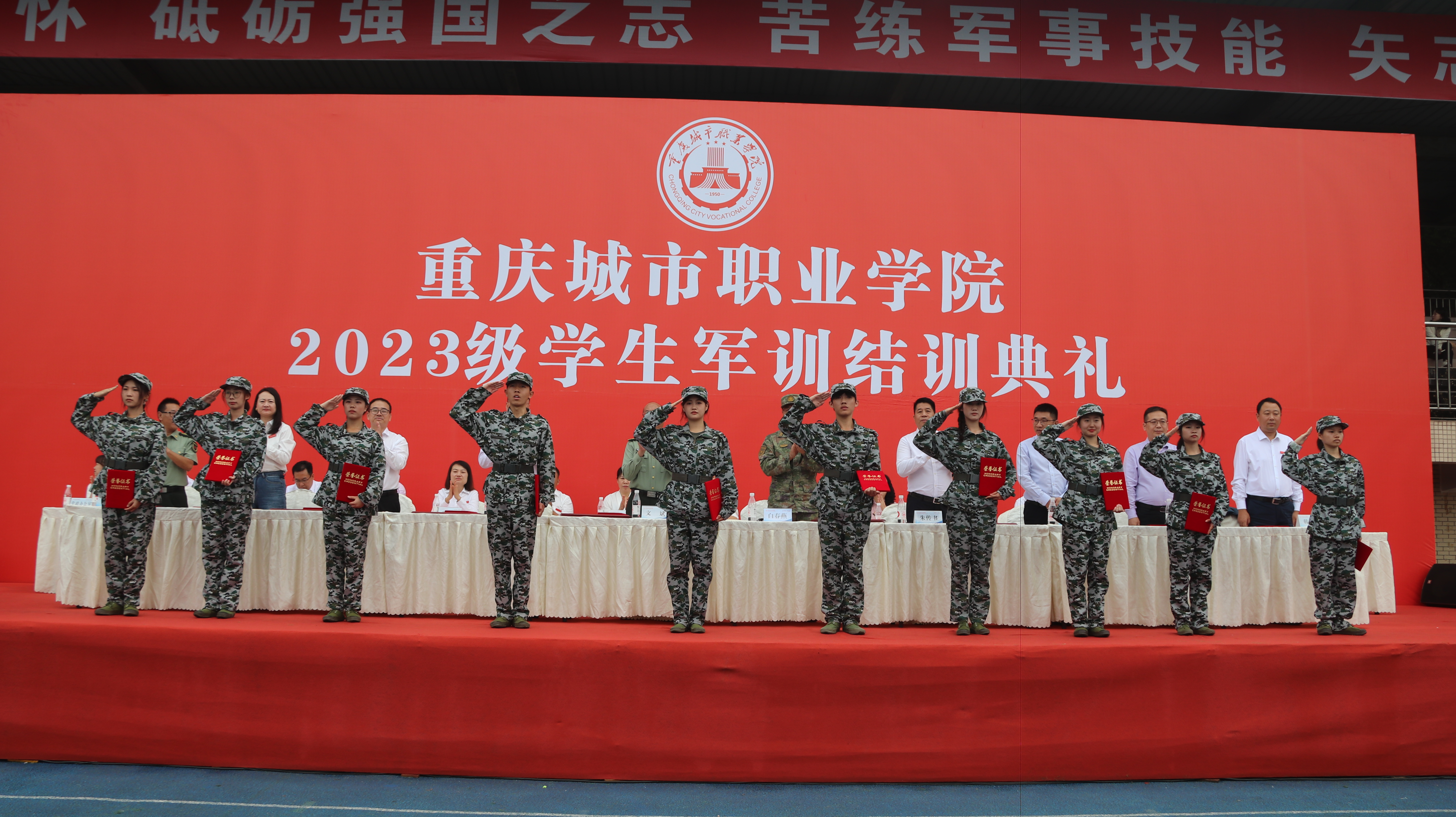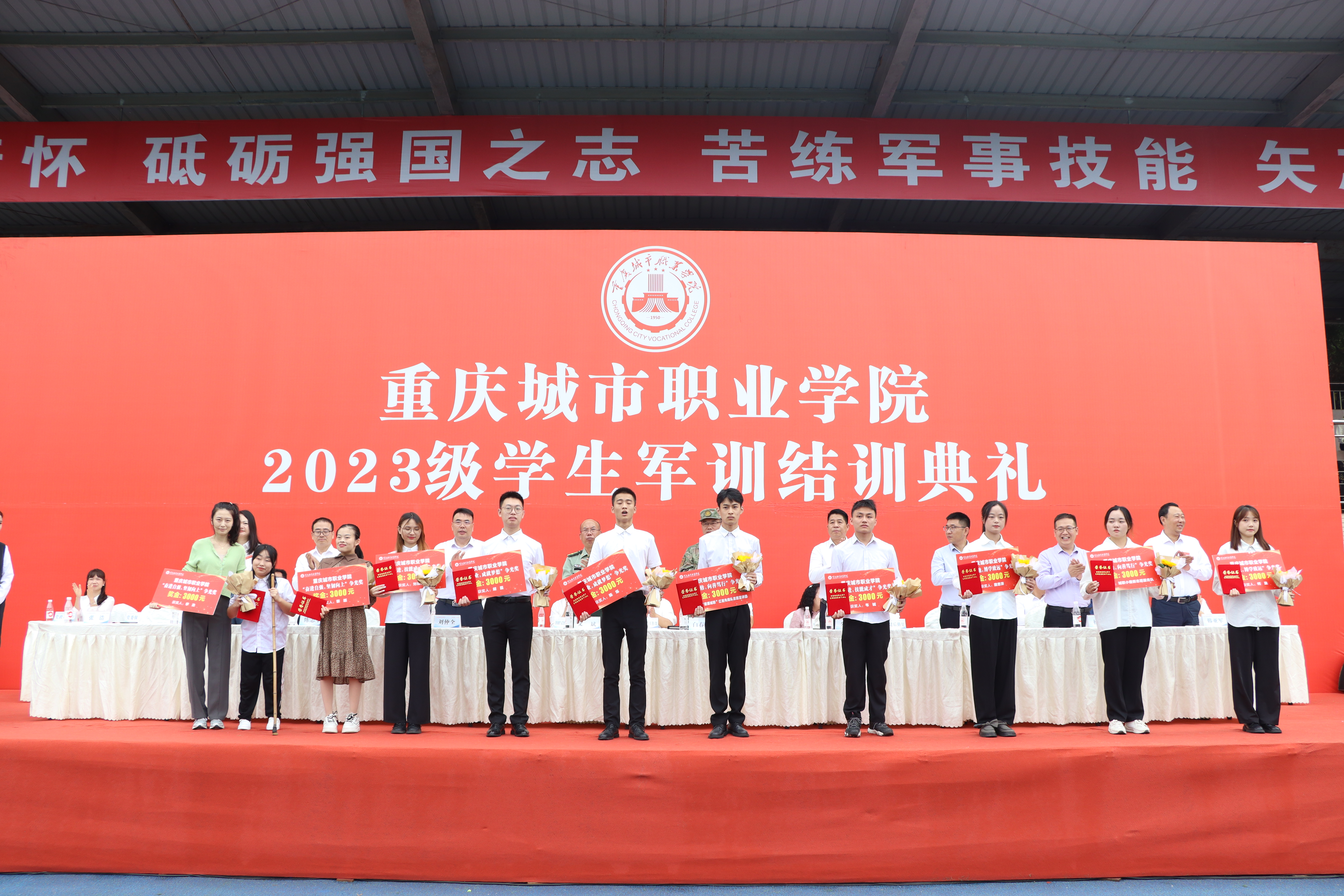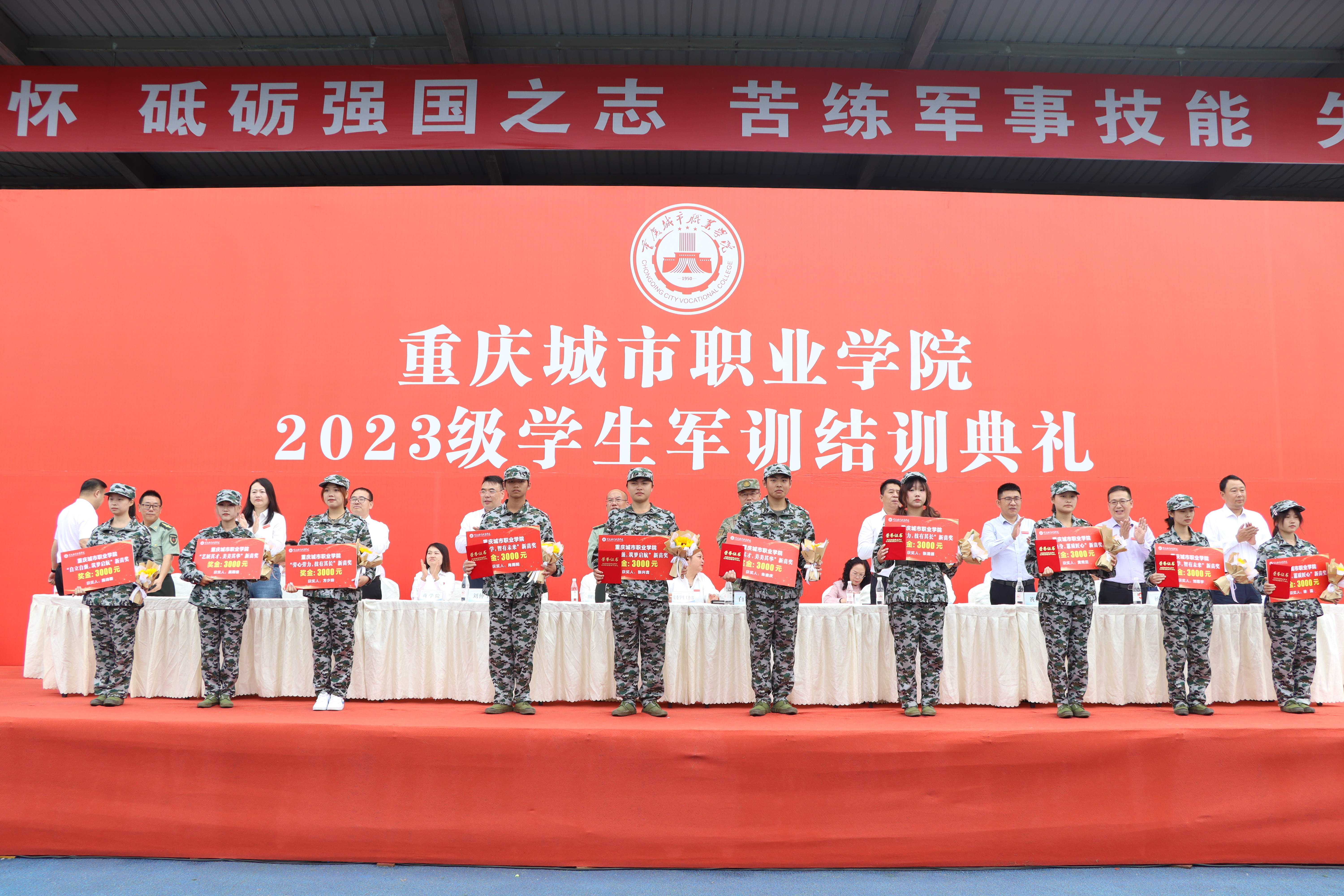 党委委员、副校长文斌代表学校党委、行政和全体师生向永川区人民武装部及全体教官表示感谢,向优秀学员、优秀教官、优秀连队以及“城市匠星新苗奖”“城市匠星争光奖”获奖学生表示祝贺。他指出,经过14天的军训历练,同学们经历了风雨,锤炼了筋骨,克服了困难,磨砺了意志,融入了集体,增进了感情,达到了军训的预期效果。他强调,军训是大学的必修课,经过军训的洗礼,大家即将开始新的学习阶段,要将军训中积攒的纪律意识、集体观念和进取精神带进未来的学习生活中,在美丽的城职校园里书写最靓丽的青春画卷。要有理想,争做新时代的追梦人。主动将自己的青春梦融入中国梦,用青春梦激扬中国梦,在实现中国梦的征程中成就出彩人生。要敢担当,勇挑时代赋予的使命。勇于担起制造强国、质量强国的责任使命,坚定走“技能成才、技能报国”之路。要能吃苦,在实践中静心打磨青春。发扬吃苦耐劳精神,日复一日的重复动作、千锤百炼,实现从新手、生手、熟手到能手、高手的进阶式跃升。要肯奋斗,明白幸福都是奋斗出来的。自觉践行“坚卓勤勉 自强奋进”的校风,“红色匠星 精益求精”的学风,以“五有城职人”的标准要求自己,用奋斗奏响青春最动人的乐章。