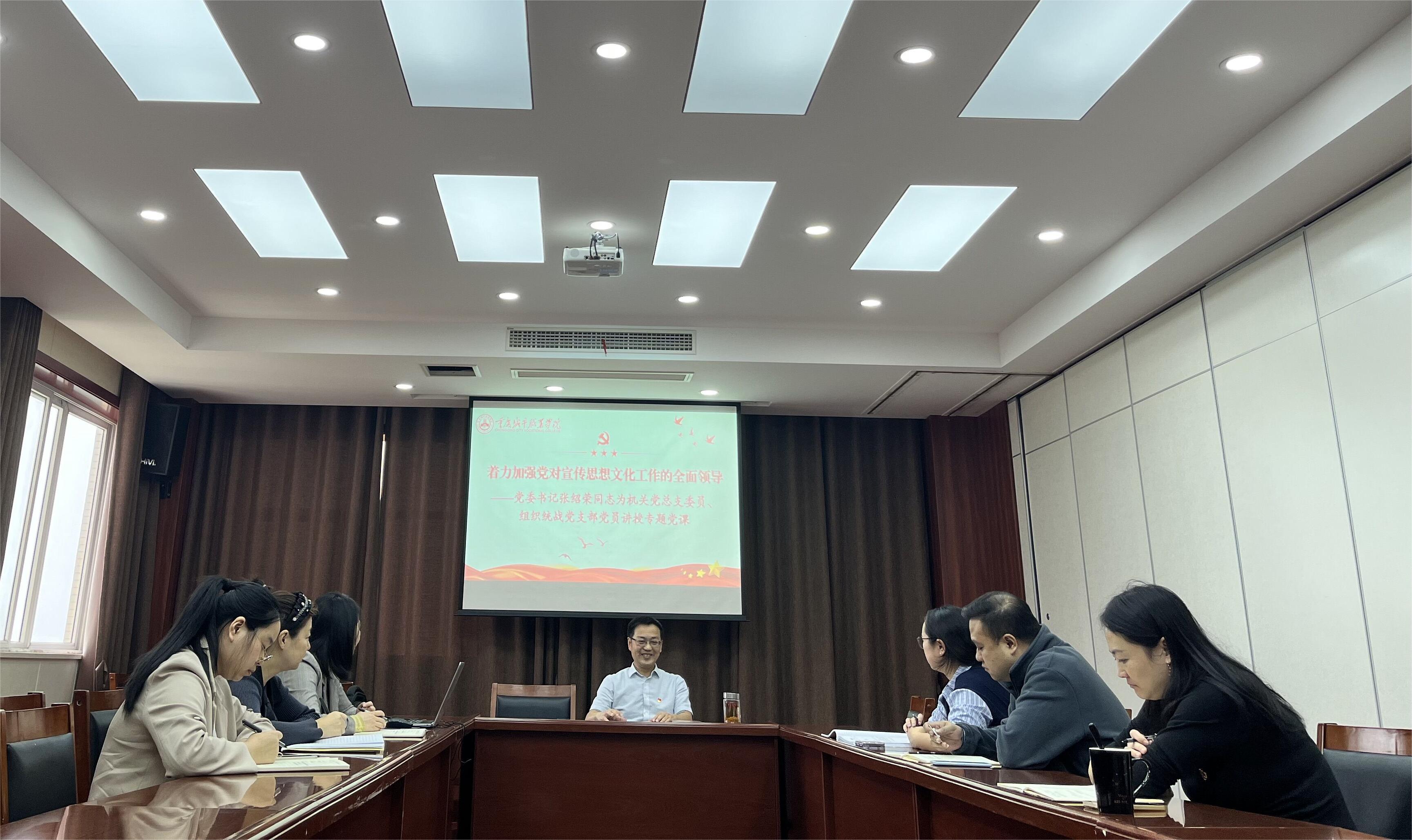 10月24日,党委书记张绍荣以《着力加强党对宣传思想文化工作的全面领导》为题,为机关党总支委员、组织统战党支部党员讲授专题党课。
