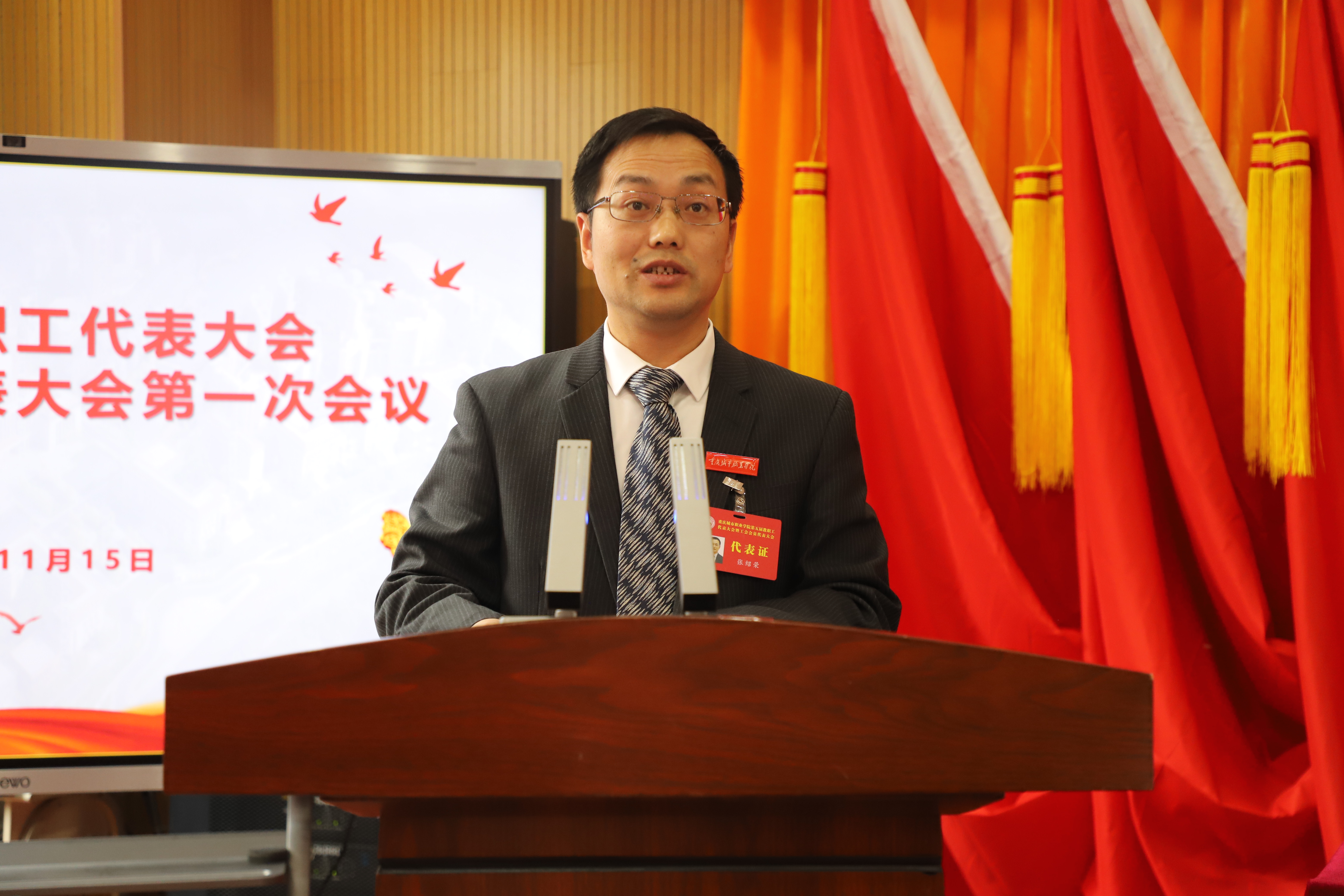 11月15日下午,学校第五届教职工代表大会暨工会会员代表大会第一次会议在文华楼328教室隆重举行。重庆市教科文卫体工会副主席袁菁霞到会指导并讲话。学校党委书记张绍荣,党委副书记、校长唐玉林,校领导文斌、刘仲全、朱传书出席会议,全体正式代表、列席代表参加大会。