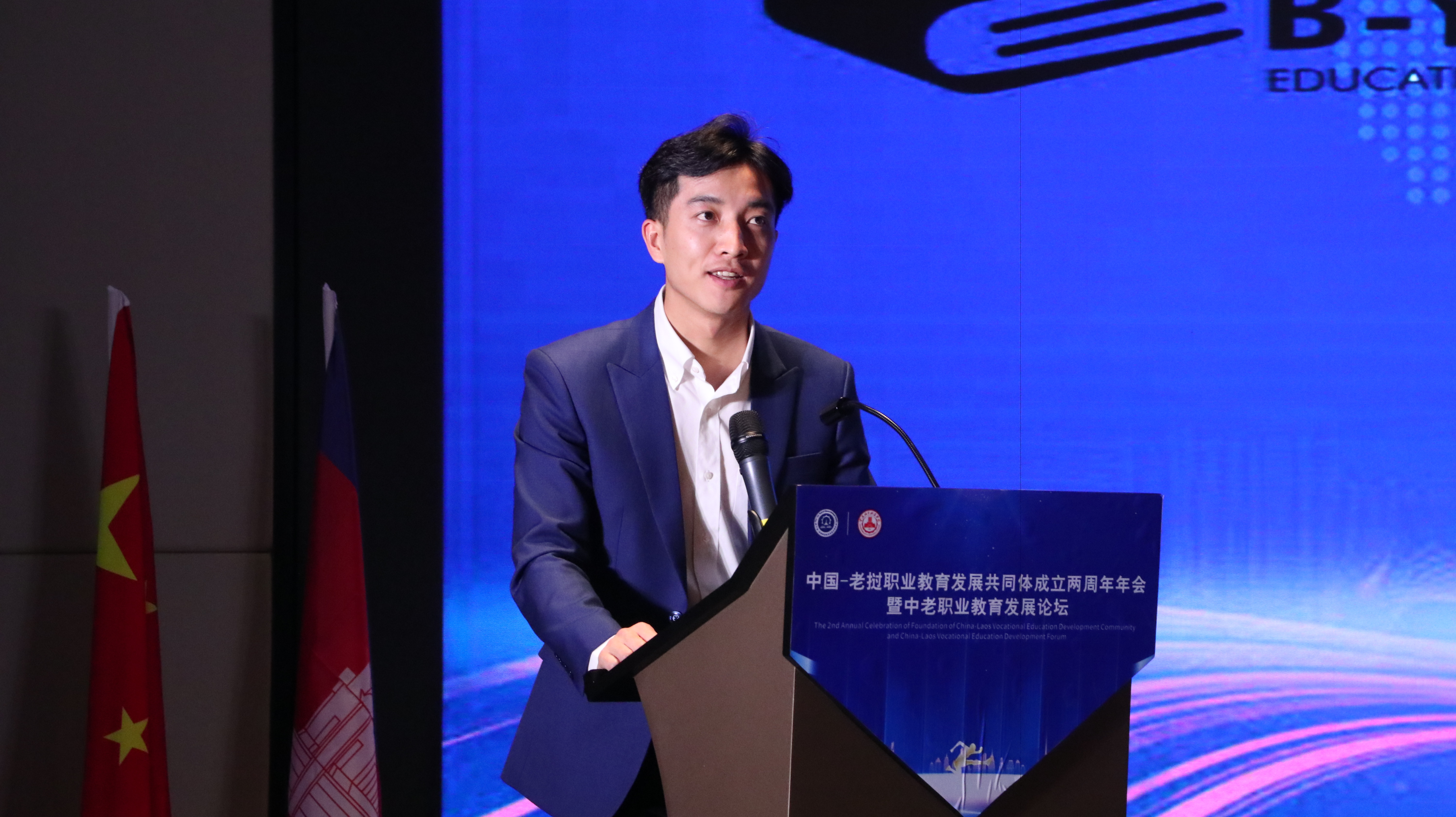老挝必优教育中心校长唐雄华作题为“搭建中老职业教育交流合作桥梁,共育高质量技术技能人才”的经验交流。
